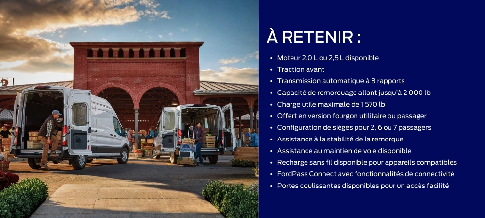 Le Ford Transit Passenger Van combine performance et technologies modernes conçues pour améliorer le confort et la commodité.